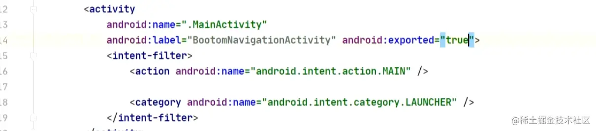修改注册清单文件:修改内置的label为 BootomNavigationActivity的Activity