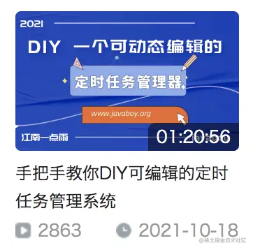 定时任务,松哥之前写过多篇文章和大家介绍,上次还自己 DIY 了一个可以动态编辑的定时任务,还录了一个配套视频:
