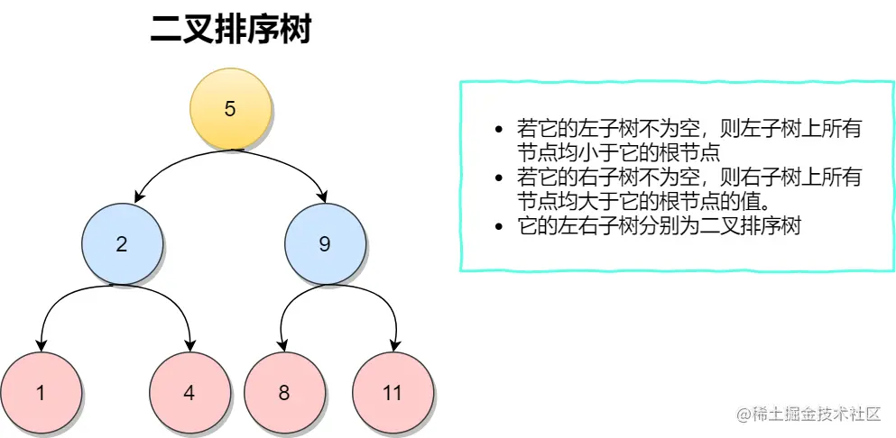 二叉排序树(Binary Sort Tree)又称二叉查找树、二叉搜索树。 它或者是一棵空树;或者是具有下列性质的二叉树: