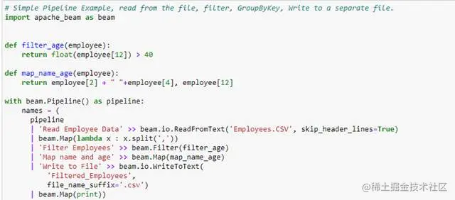 今天我们介绍了如何使用pipeline在 Apache Beam 中的文件中读取、写入数据,其中“Employees.csv”文件被读取/过滤/写入新文件。