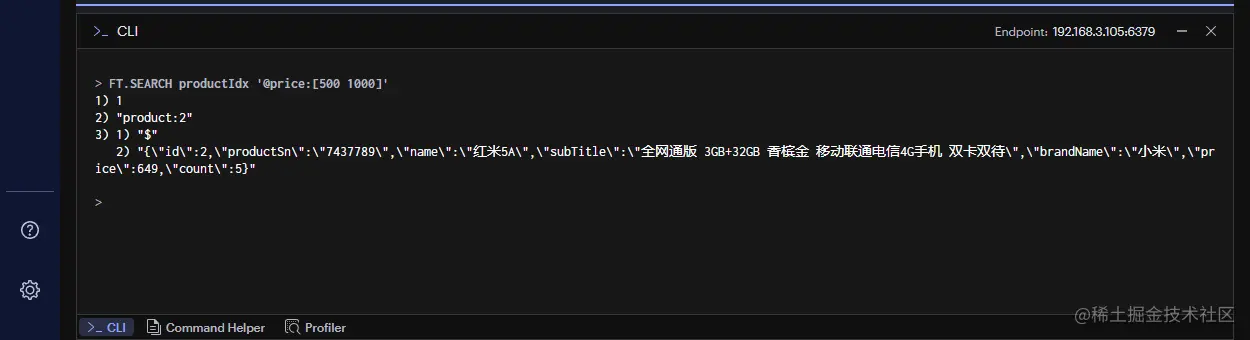 FT.SEARCH对数据进行查看了,比如使用*可以查询全部;