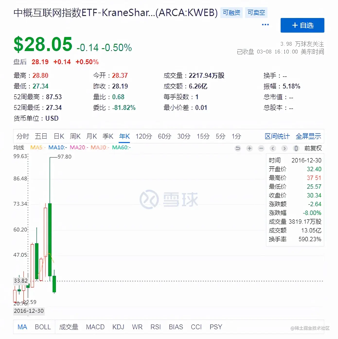 如何判断当前中概股的形势?一个简单的市场指标就足以说明。比如,中概互联网指数ETF-KraneShares(KWEB)截至美东时间3月8日收盘的净值为28.05美元,仅仅相当于2016年的水平,这是历史罕见的极低估值区间。但近几年主要中概股的增长都是显而易见的,基本面稳健,并不可能被市场情绪的下行抹平。