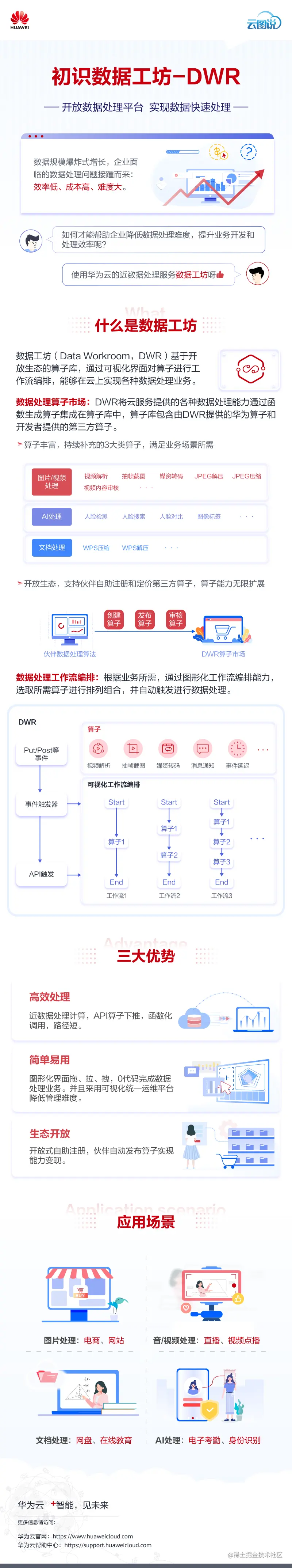 云图说丨初识数据工坊DWR 华为云开发者联盟 2022-03-10 260 阅读1分钟 本文分享自华为云社区《【云图说】第236期 初识数据工坊DWR》,作者: 阅识风云。 数据工坊DWR是一款近数据处理服务,通过易用的工作流编排和开放生态的数据处理算子,能够在云上实现图像、视频、文档、图片等数据处理业务。 点击关注,第一时间了解华为云新鲜技术~
