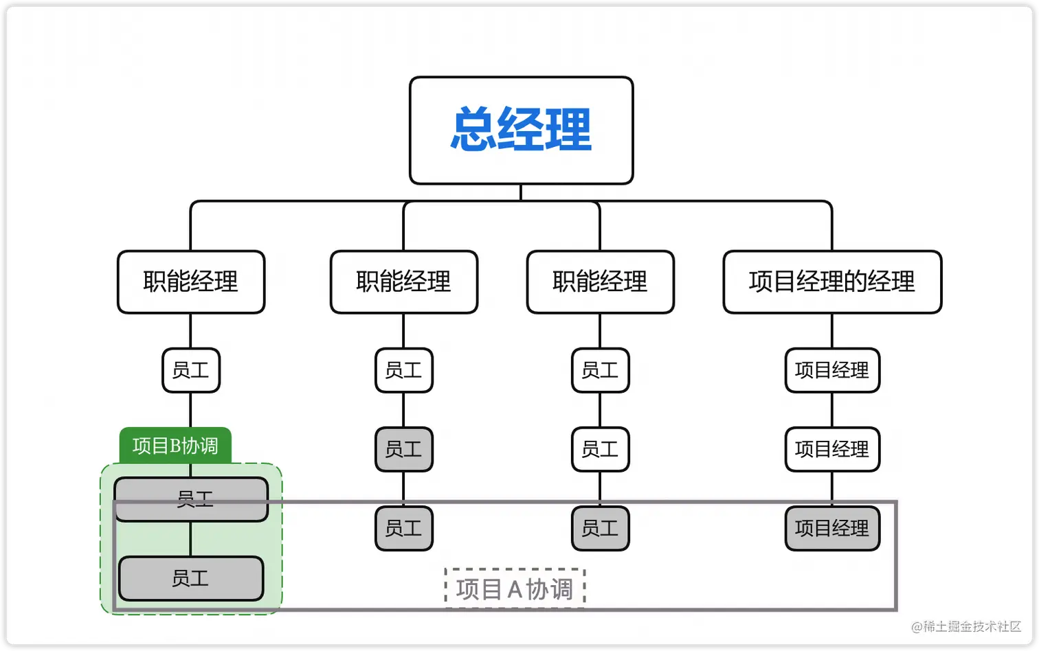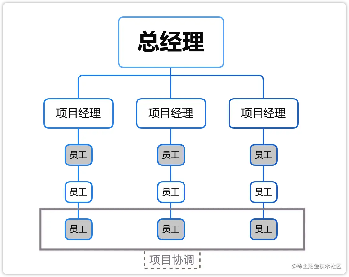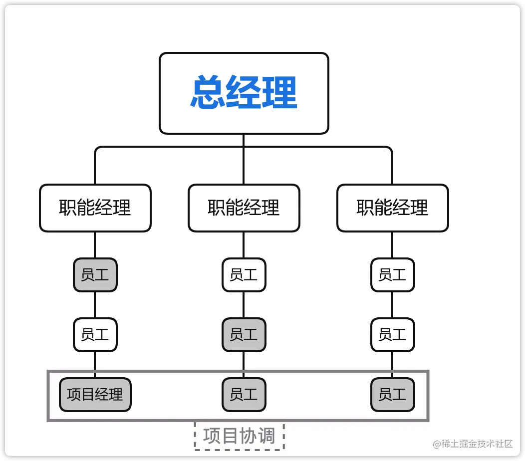 | 组织结构 | 项目组织 | 只能部门 |