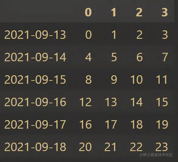 df = pd.DataFrame(np.arange(24).reshape((6,4)),index=index)