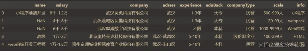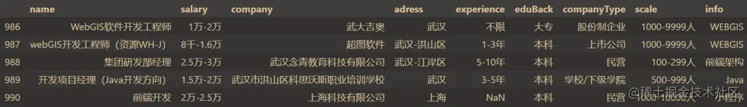 本文主要详细介绍了pandas的各种基础操作,源文件为zlJob.csv,可以私我进行获取,下图是原始数据部分一览。