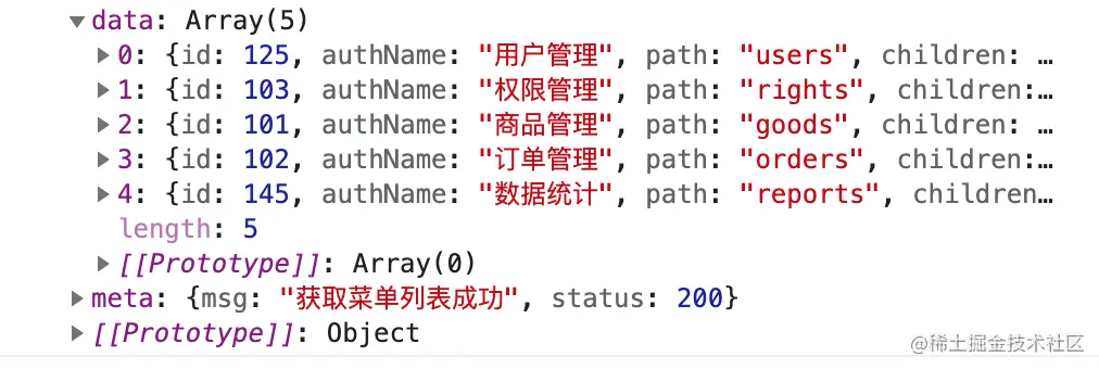 通过接口获取菜单数据