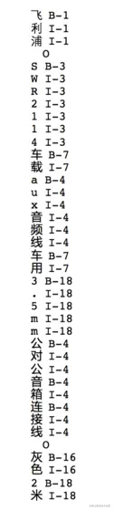 2.数据格式:训练集数据每一行第一列为一个字符或空格(汉字、英文字母、数字、标点符号、特殊符号、空格),第二列为BIO形式的标签,两列以空格分隔。
