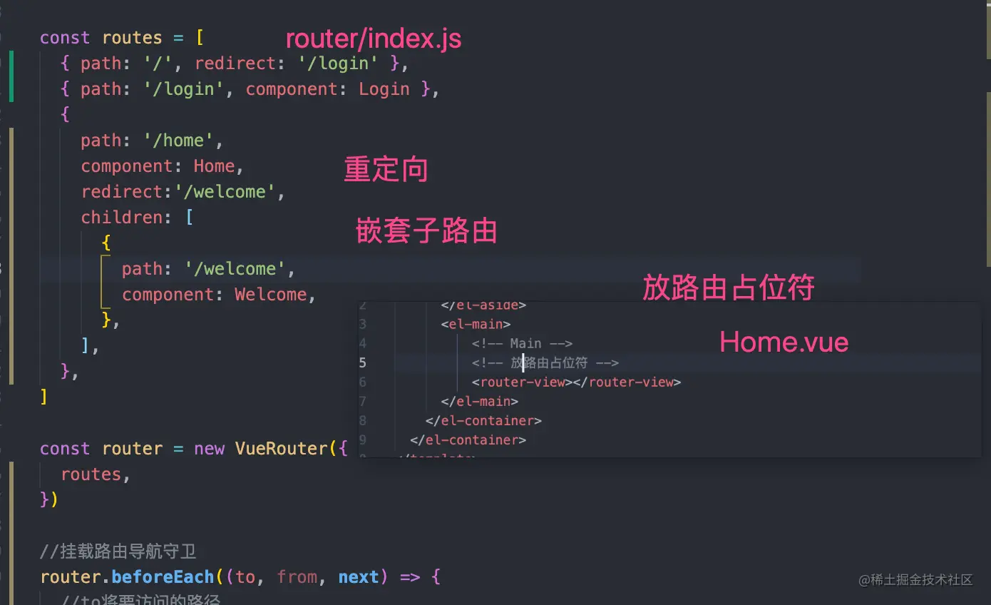 ElementUI首页路由重定向,以及左侧菜单路由改造 _不知火舞 2022-03-10 303 阅读1分钟 实现首页的路由重定向 只要登录成功,就在main的区域显示欢迎 新增welcome组件 添加路由规则 效果: 左侧菜单改造成路由链接 为menu菜单开启路由模式,加router 利用index属性改变URL地址