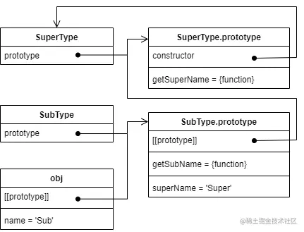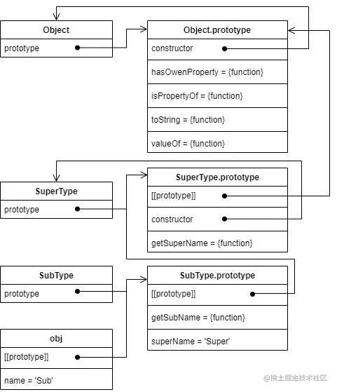 SubType.prototype = prototype //指定对象
