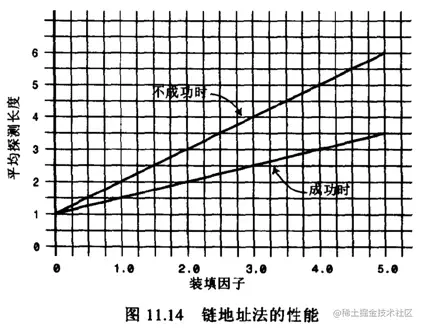 - 平均探测长度以及平均存取时间,取决于填装因子,*随着填装因子变大,探测长度会越来越长。