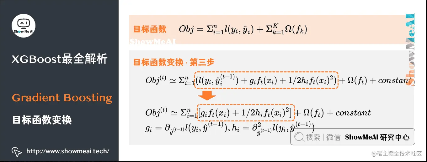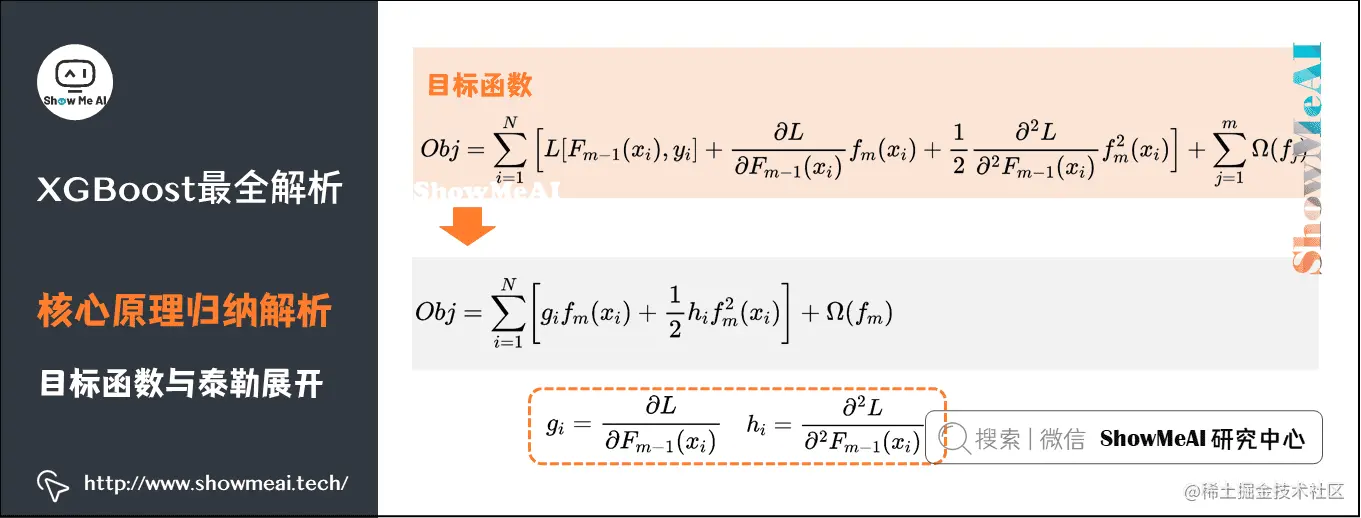 Obj=i=1∑N[gifm(xi)+21hifm2(xi)]+Ω(fm)