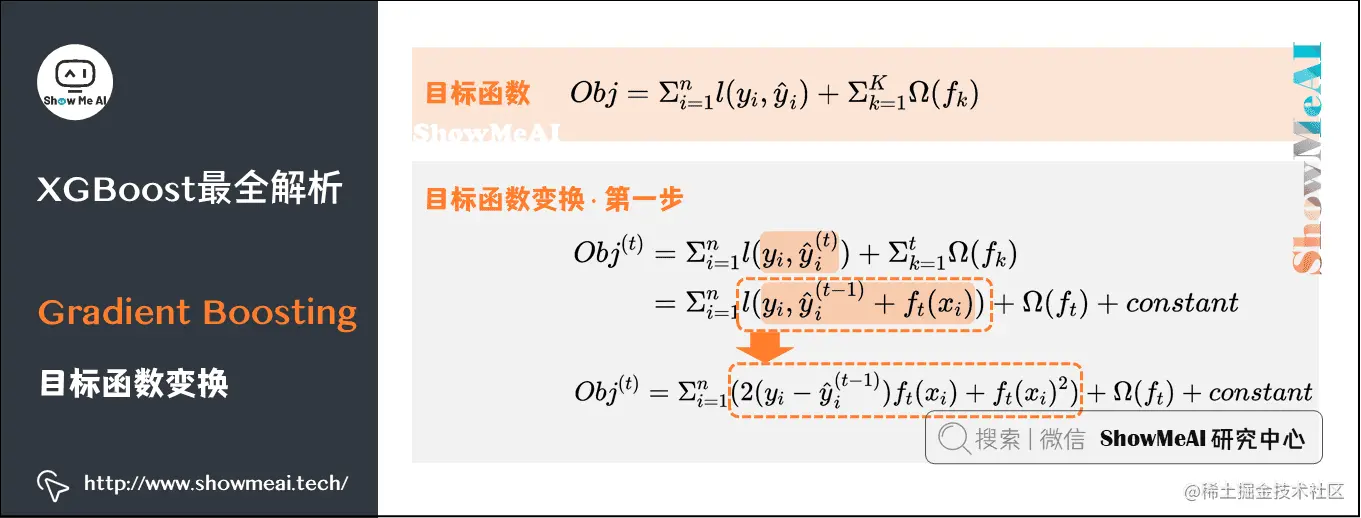 Obj(t)=Σi=1n(2(yi−y^i(t−1))ft(xi)+ft(xi)2)+Ω(ft)+constant