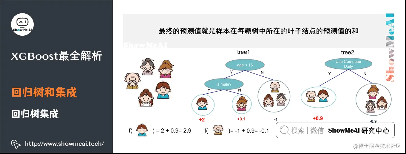 - 小男孩被分到第一个叶子结点中,所以小男孩的预测值是2;