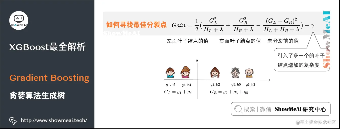 Gain=21[HL+λGL2+HR+λGR2−HL+HR+λ(GL+GR)2]−γ