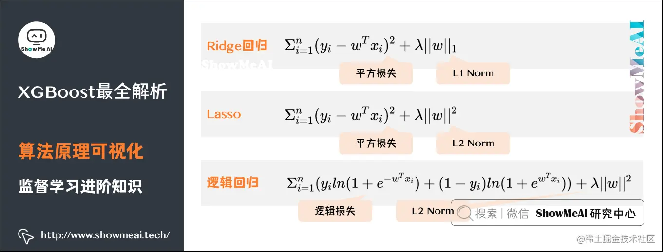 我们对之前讲解过的GBDT(参考ShowMeAI文章【GBDT算法详解】)和这里的XGBoost做一个对比总结: