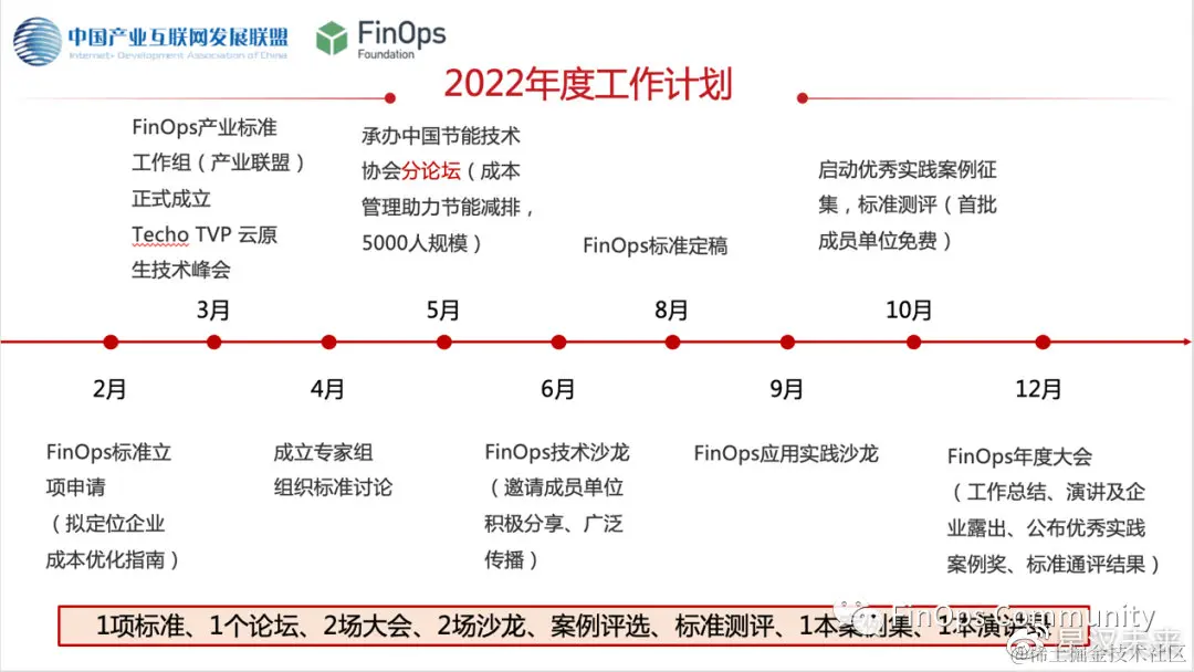 FinOps 产业标准工作组将积极开展对国内外 FinOps 技术和产业实践的研究,通过团体标准研制、报告发布、技术研讨、测评认证、市场活动等工作,促进 FinOps 技术演进、实践经验的沉淀。
