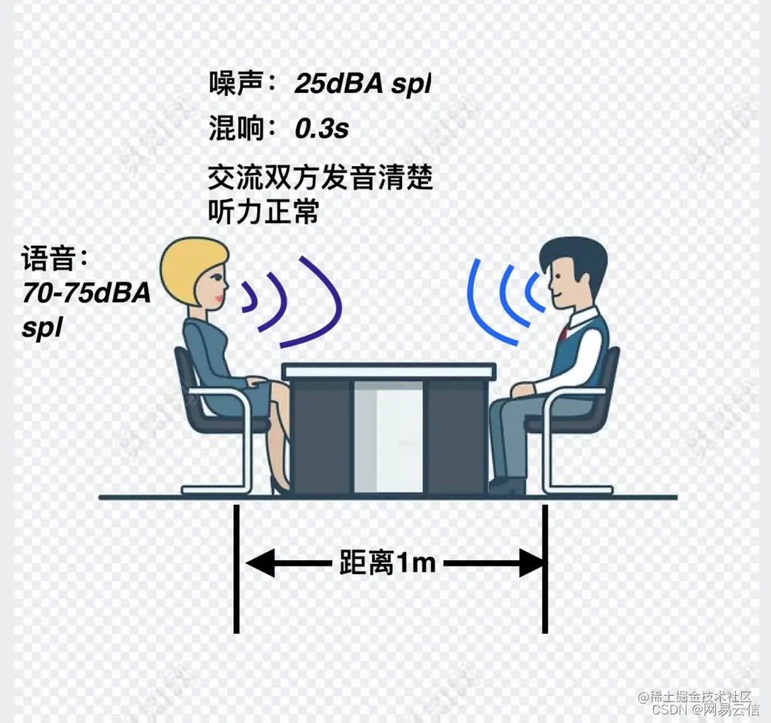 适宜听音的混响环境: 混响通常会影响听音者的理解程度,混响越大,语音的拖尾越长,可懂度也就越低。比如在混响较大的演唱厅,对于乐器和歌声来说,会有一定的美化效果,但是对于人的沟通交流是不利的。