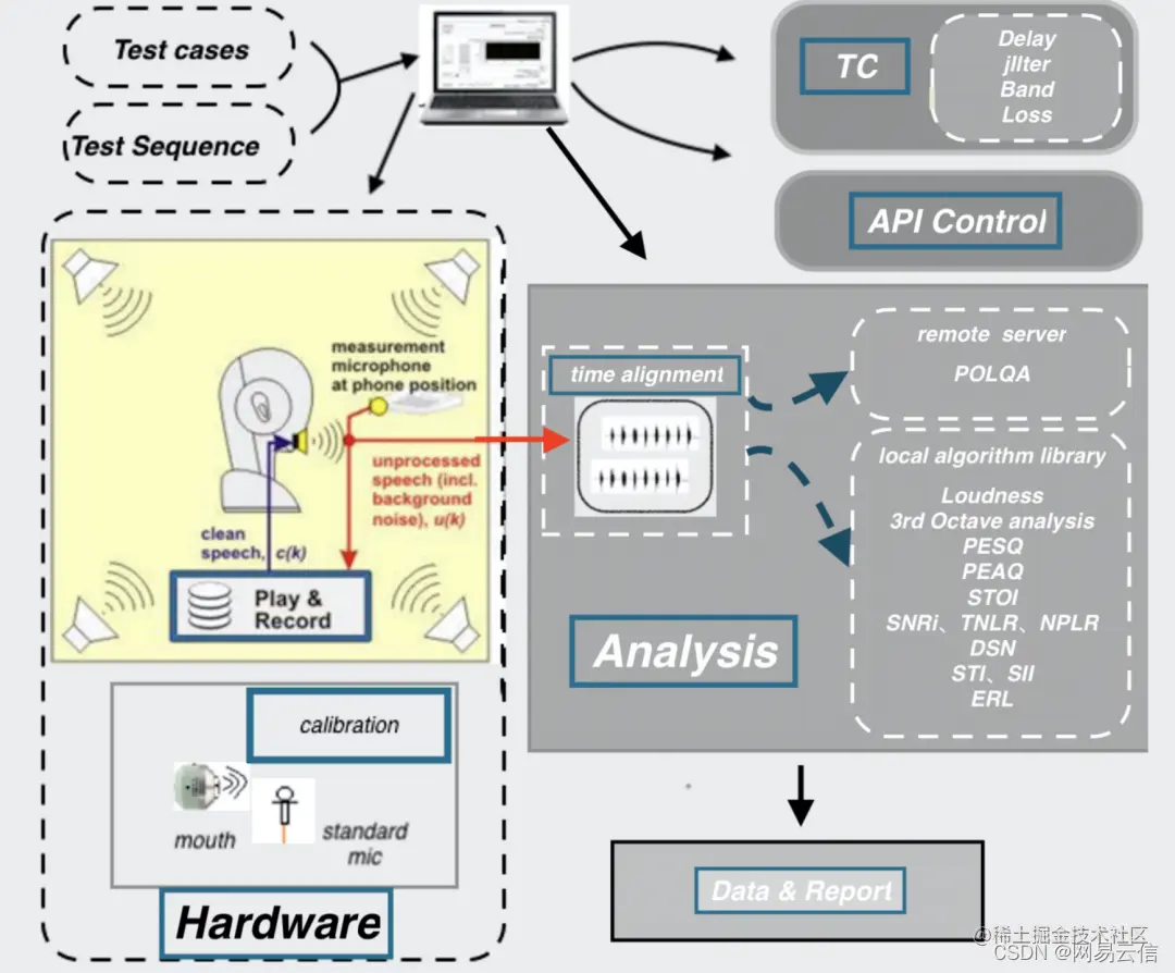 针对以上的痛点问题,网易云信目前在音频效果的评价和测试上,打造了一套从实验室构建、环境模拟、采集播放、评价方法端到端的客观评价方法。