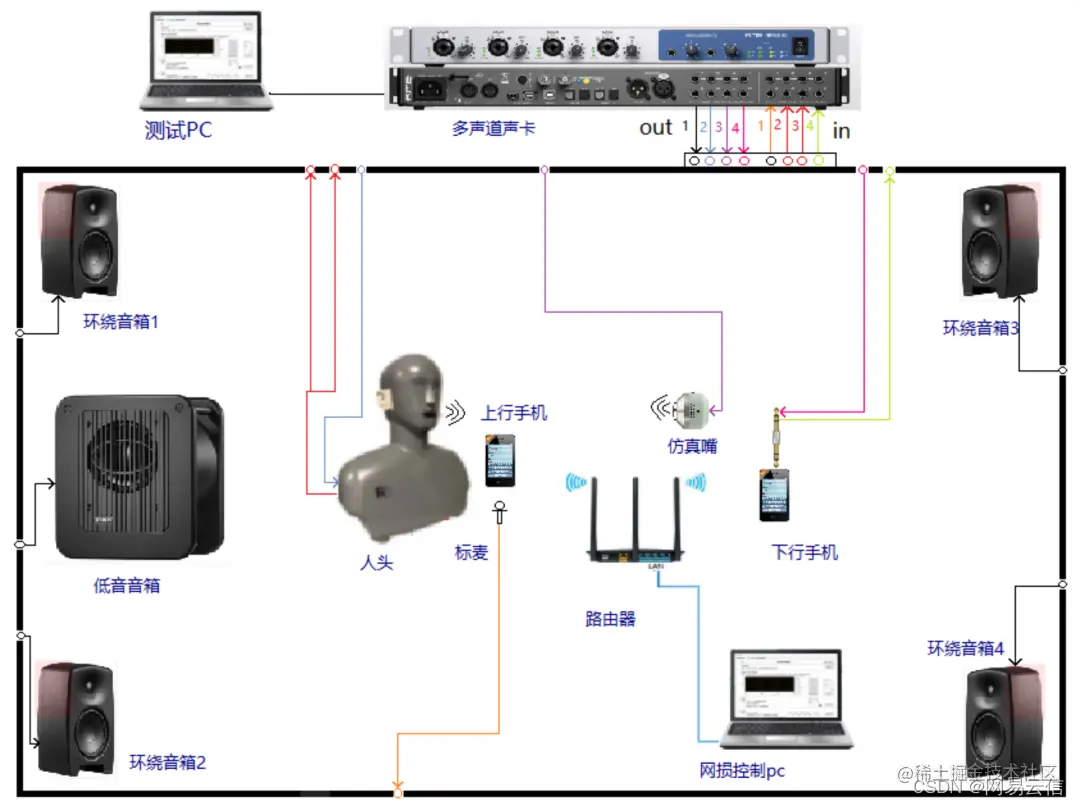上图是网易云信的声学实验室,主要的设备和硬件配置如下所示: