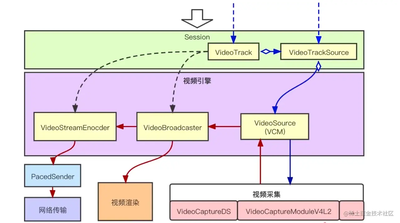 通过上层api可以直接在session层创建VideoTrack, VideoTrack内部包含VideoTrackSource;