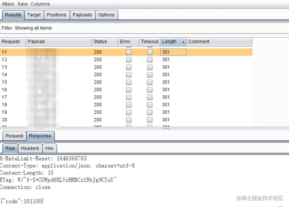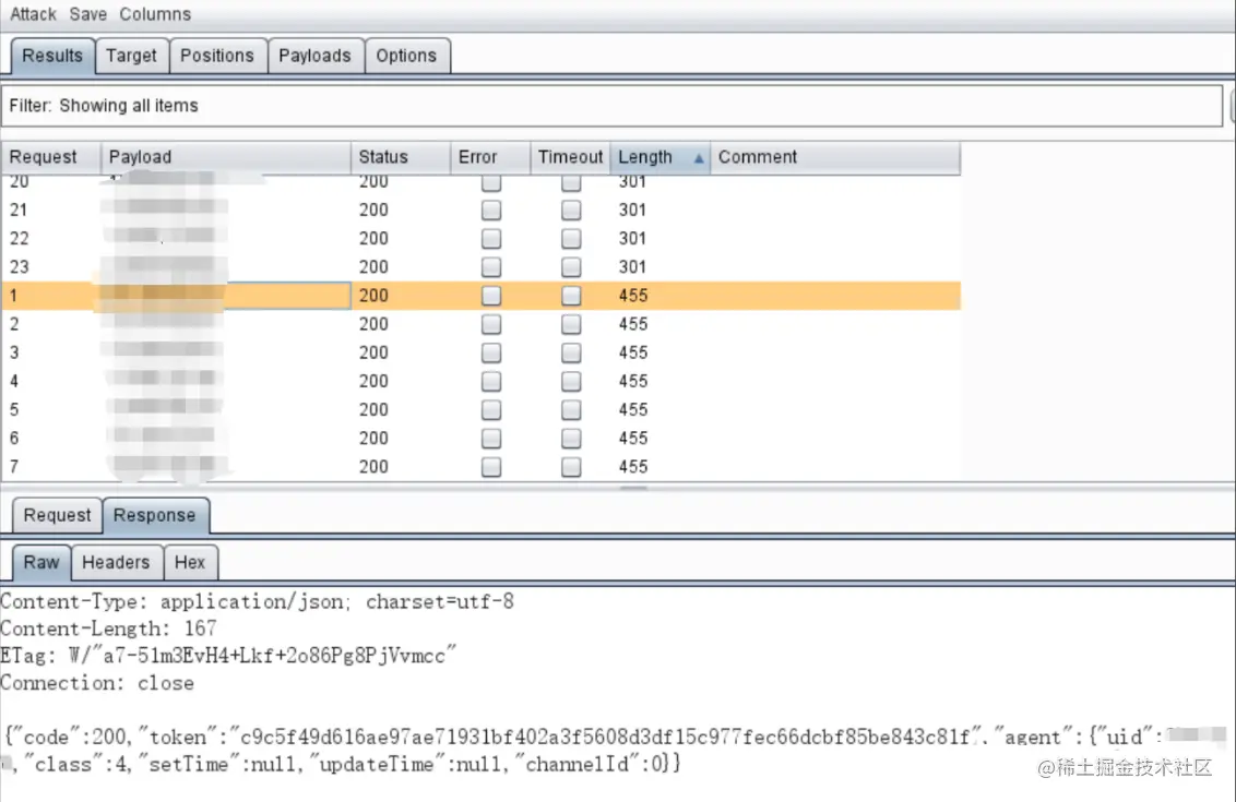 通过上述接口,可以通过用户的uid获取用户的用户名,将所有的用户名作为字典,放入burp爆破弱口令
