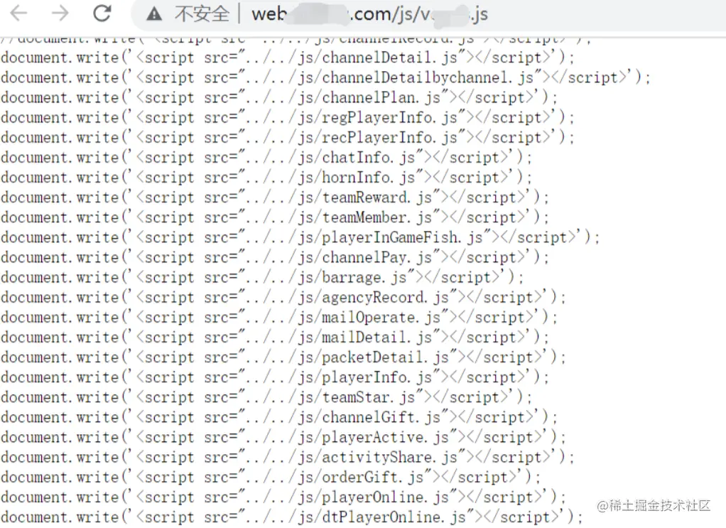 这个网站的前端界面都是通过在js文件里document.write函数构造