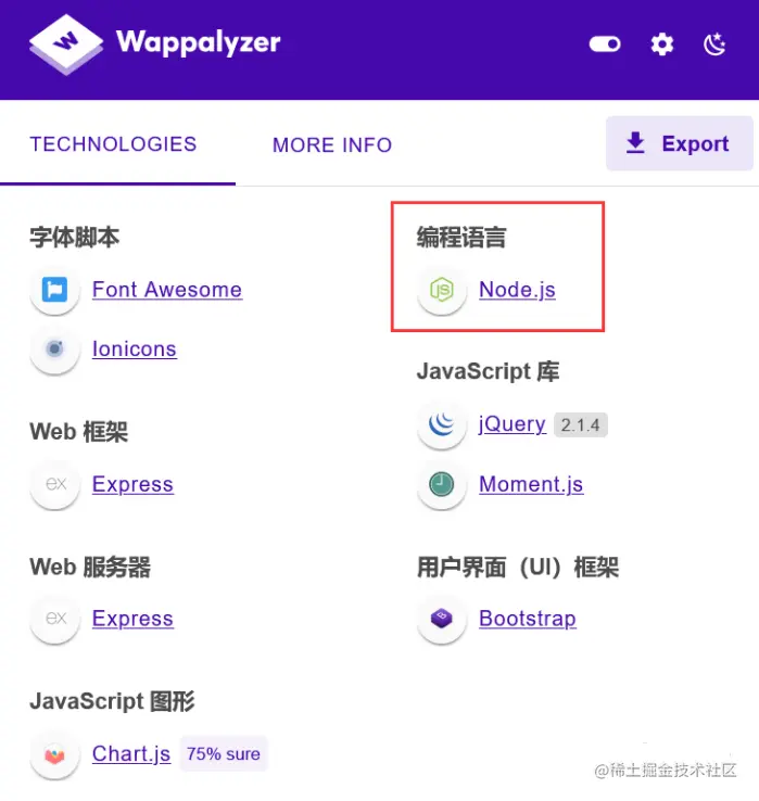 目录探测发现404界面也极像Node.js的404页面,后面重点关注js文件