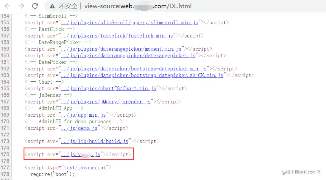 前面说了,重点关注js文件,查看页面源代码,发现一个有趣的js文件,为什么说这个文件有趣呢?因为这个js的文件名和产品名一致