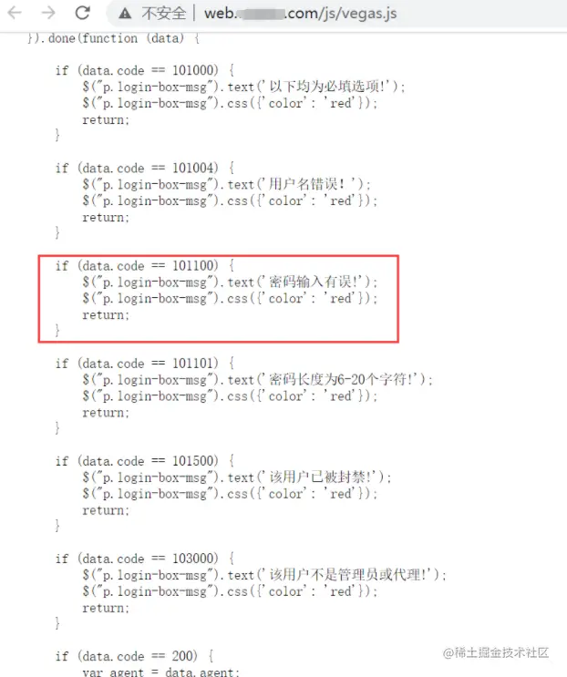 根据js代码里的if逻辑可以很清楚的看到:返回包code值为101100是密码错误,200就是登陆成功,