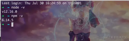 安装完成后,再运行 node -v和npm -v,查看下版本
