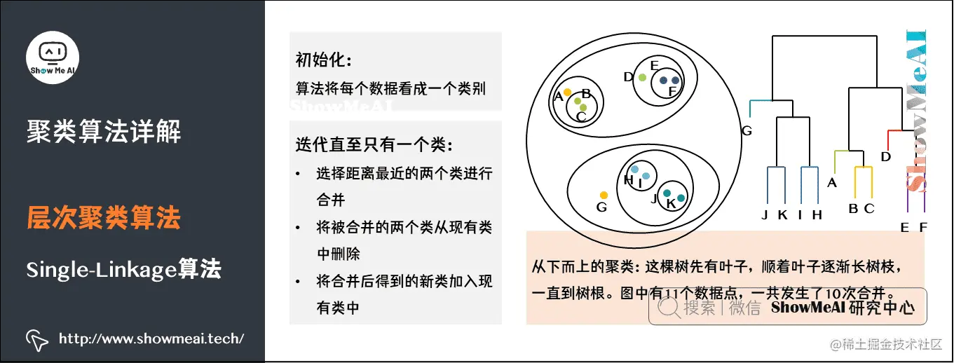 这是一个从下而上的聚类。这棵树是先有叶子,顺着叶子逐渐长树枝,树枝越长越大一直到树根。