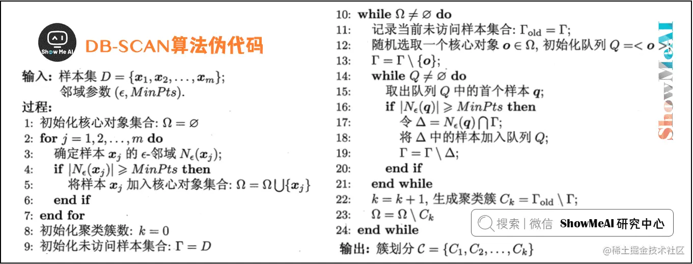 - 对与,若存在使得与,均由密度可达,则称与密度相连。