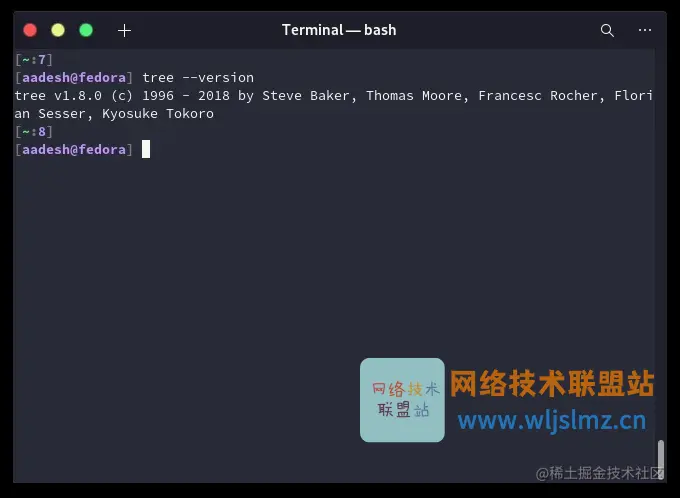 如果输出显示tree命令的版本,那么它已经安装在您的系统上,您可以跳到本文的下一部分,如果未安装该命令,您可以键入以下命令,具体取决于您的操作系统的风格: