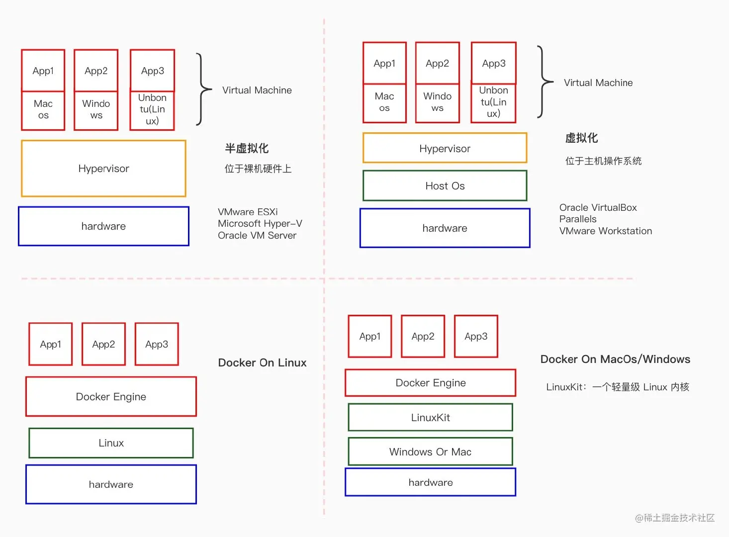 虚拟机(VM)和Docker经常在一个上下文出现,因为它们都是用于隔离环境