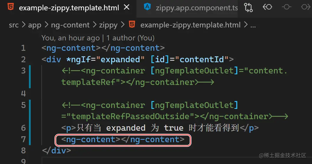 消费 Component 时,通过 ng-template + 自定义 Directive 的方式指定被投影的内容:
