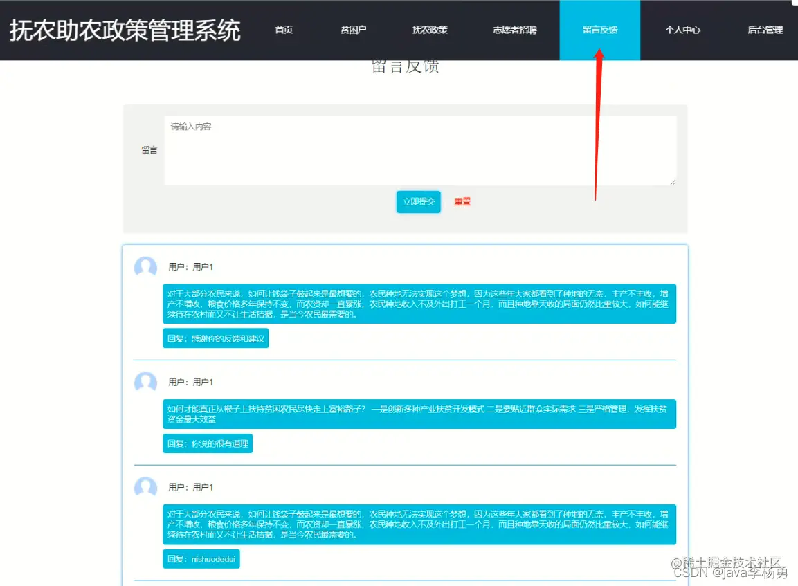 留言反馈: 在留言反馈页面输入留言内容并立即提交或重置操作