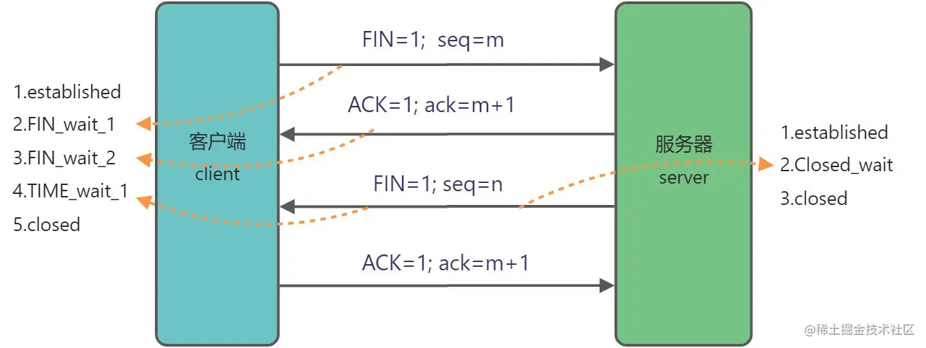 FIN:final 终止 等于1 表示发送报文结束了,要释放该连接 ==>要进行四次挥手
