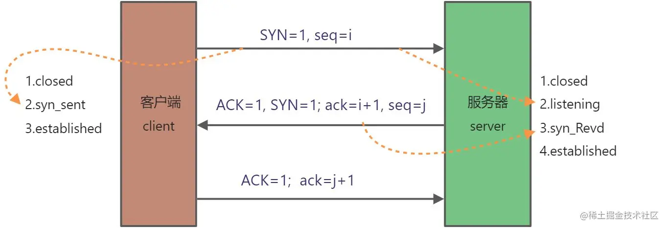 SYN:synchronous 同步 ==>表示是发起连接的消息 1、发起连接 2、确认接受连接