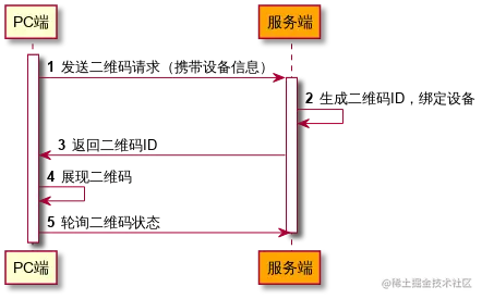 - 为了及时知道二维码的状态,客户端在展现二维码后,PC端不断的轮询服务端,比如每隔一秒就轮询一次,请求服务端告诉当前二维码的状态及相关信息