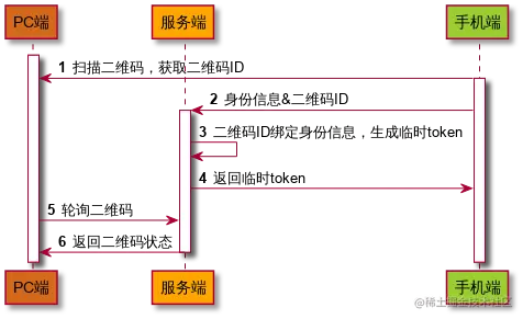 Server -> Server: 改变二维码状态,生成PC端token
