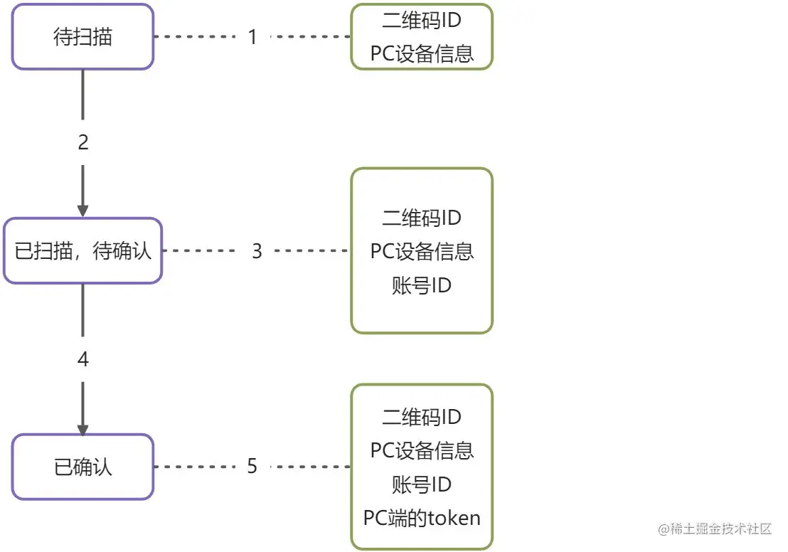 - 因为PC端一直在轮询二维码状态,所以这时候二维码状态发生了改变,它就可以在界面上把二维码状态更新为已扫描