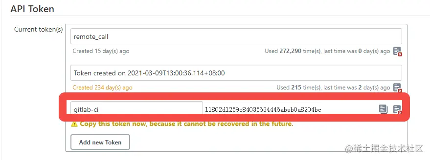 在 APT Token 栏点击 Add new token,输入 token 名,点击 Generate。