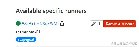 注册成功后可在红框下面 Available specific runners 里看到我们刚刚注册的 runner,类似下图。其中: