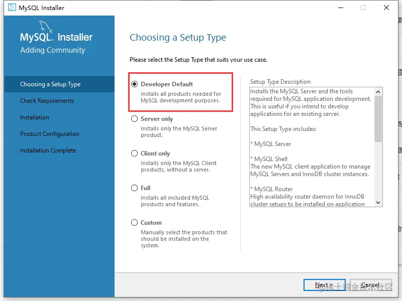 5.双击打开,选择Developer Default,点击Next