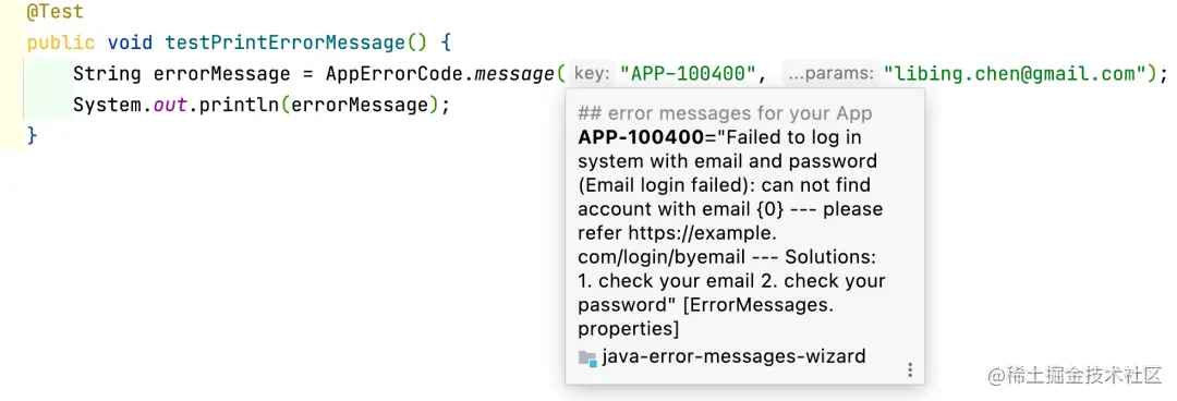- 国际化支持:Java的同学都知道,如果你的错误消息想调整为中文,创建一个ErrorMessages-zh_CN.properties 即可。原文中的建议是Don’t localize error messages,但是考虑到国内大多数程序员未必能用英文表达清楚,所以中文也是可以的。题外话:如果中国的程序员都能用英文清晰地阅读文章和表达自己的思想和观点,我们在计算机方面的水平可能会提升到更高的台阶。