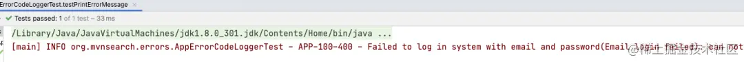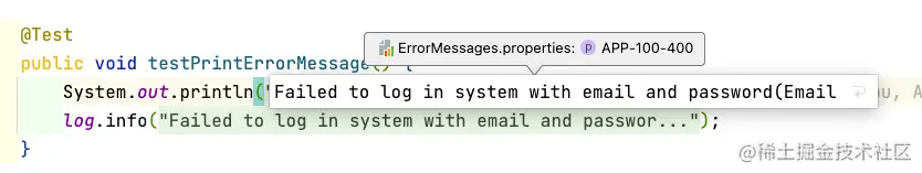 这样在任何地方如果你要打印错误消息的时候,这样log.info(AppErrorMessages.message("APP-100-400","xxx"));就可以。如果你还有想法和log进行一下Wrapper,如 log.info("APP-100-400","xxx"); ,也没有问题,样例代码如下: