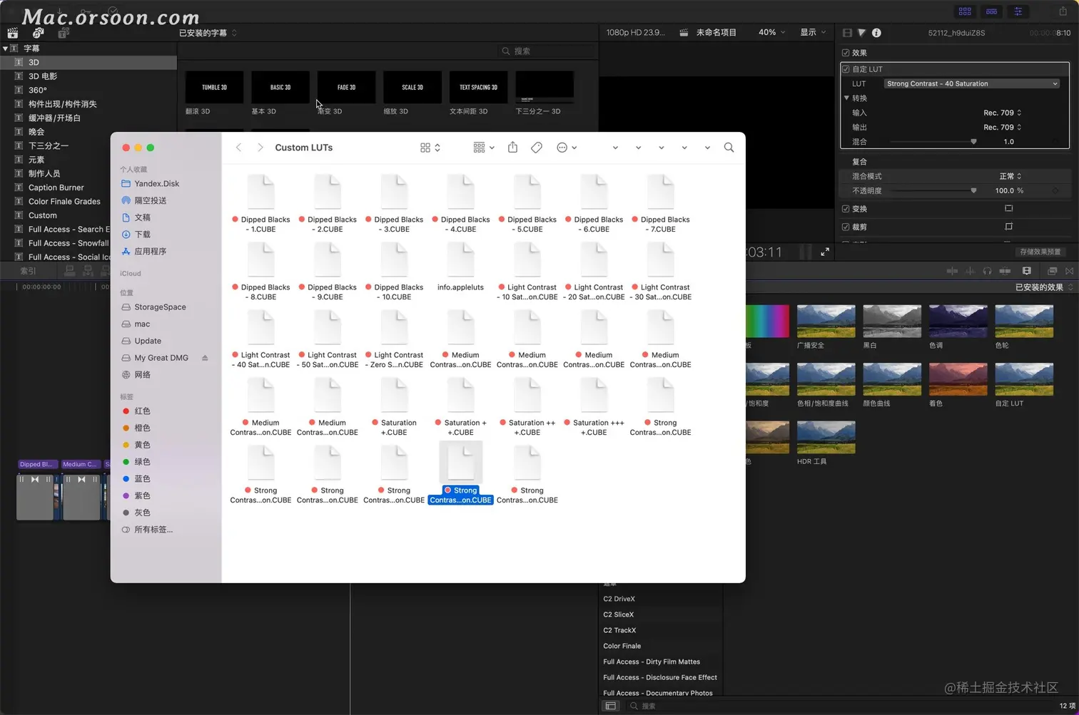 Final Cut Pro X(fcpx)现在不需要通过第三方插件来调用Lut预设,自带的颜色功能可以加载自定义预设,小编来手把手教你怎么安装 3d lut,需要cube格式的lut预设!
