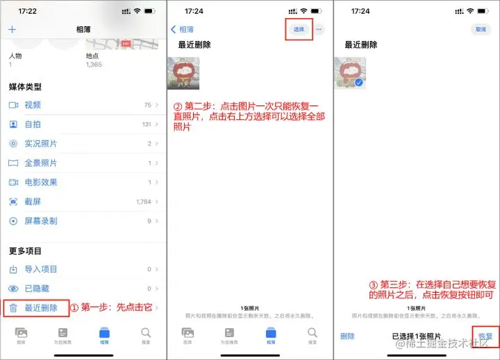 很多小伙伴在用苹果手机的时候,从相册中把照片删除了可能以为就是真的永久删除了,但其实删除的照片会存放在苹果手机相册中的“回收站”里面。需要注意的是:苹果手机相册中的“回收站”里面保存的照片只有30天,超过了30天则永久删除。一旦超过了30天如何恢复永久删除的照片,小编建议各位可以直接查看第三种方法,苹果手机相册“回收站”在哪找?请看以下步骤: