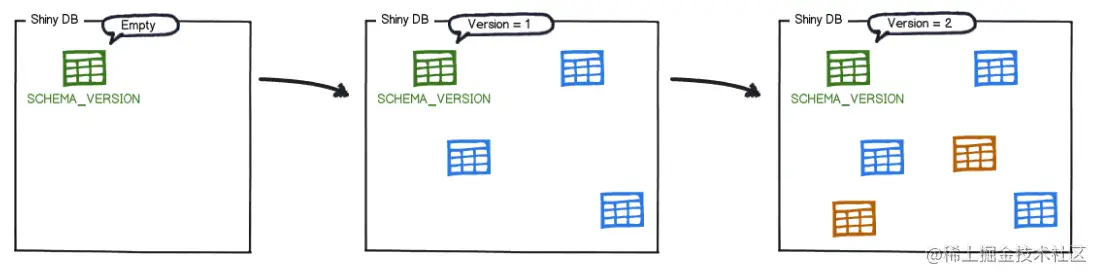 使用Flyway时我们需要编写好数据库迁移的SQL脚本,比如V1__Initial_Setup.sql中初始化了三种表,V2__First_Changes.sql中又新增了两种表。Flyway会创建flyway_schema_history表,用于存储这些SQL脚本的执行情况,从而对数据库进行版本控制。当我们使用Flyway进行数据库迁移时,Flyway会根据flyway_schema_history表中的记录,自行决定需要执行哪些SQL脚本,从而实现数据库迁移。